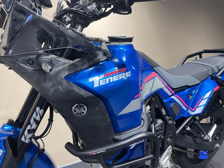 We have an outstanding offering in this 2025 Yamaha T7 World Rally with only 4199 miles. It has lots of extras beyond the high specification for this top of the range edition of Yamaha's Tenere.