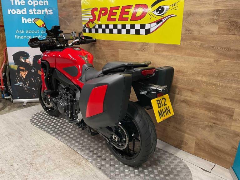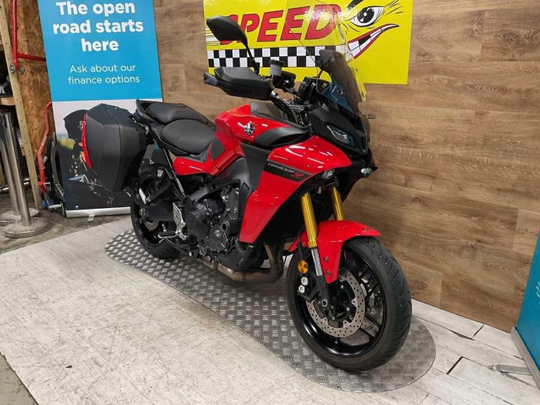 2023 Yamaha Tracer 9 GT, only 3583 miles and 1 owner from new, hand book and spare key, the bike is in excellent condition and comes fitted with panniers, frame protectors and a Tom Tom Sat Nav. The 2023 Yamaha Tracer 9 GT is one of the most advanced sports tourer Yamaha has ever built.This is a fine sports tourer that should keep the Tracer name at the top end of the sale charts upon its for a very long time, but the extra specs of the GT really make it an essential purchase. Retail bikes: Competitive finance & great part exchange allowances. Call our team for an easy, no obligation quote. All our retail bikes come with a full PDI, valet & 3 months total cover warranty (additional £75). Credit & debits cards accepted. Delivery in mainland UK from only £125 + VAT. Compulsory admin fee of £100 for 3rd party finance.