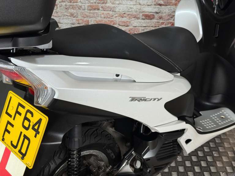 Yamaha Tricity 125 LOW MILEAGE, FULL HISTORY, READY TO RIDE RESERVE ONLINE FOR £99 2014 (64 Reg) Only 6,291 Miles Yamaha Main Dealer Service History Practical, Economical, & Nimble Here we have a superb example of the Yamaha Tricity 125 a unique three-wheeled scooter designed to deliver outstanding stability, confidence, and fun in urban environments. With just 6,291 miles from new, full Yamaha dealer service history, and a host of practical extras, this Tricity is ready for its next owner to enjoy. Key Details 2014 (64 Reg) Only 6,291 miles 1 previous owner First registered: 01092014 MOT supplied as part of sale Full Yamaha main dealer service history Owners manual & service book present 2 ignition keys & 2 keys for top box Fitted Extras: Genuine Yamaha colour-coded top box Matching top box rack Knuckle guards (great for winter commuting) 12V charging socket Phone mount What We'll Do Before Delivery: Annual service included New MOT included Full pre-delivery inspection 3-month parts & labour warranty provided HPI clear & professionally valeted Why Buy from Us? Nationwide delivery with tracking & updates Reserve online today with just a £99 deposit All bikes prepared and safety-checked by experienced technicians Finance Options Available: We can offer flexible finance packages on this Tricity: HP & PCP available Options for most credit profiles Simple online application & quick decisions Finance from anywhere in the UK with nationwide delivery Reserve this Yamaha Tricity 125 now on our website for just £99! This is an ideal commuter or city runaround low mileage, well maintained, and fitted with practical extras for everyday use. A rare opportunity to grab a clean, well-looked-after Tricity 125 that's ready to ride away.