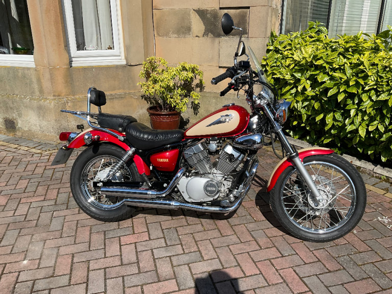 Yamaha XV 250 S 1998 like new condition, only showing just over 3000 miles in the last 27 years. Various extras on the bike including heated handle bar grips, crash bars, front screen and external charging lead for the battery. Last serviced 2022, new battery 2024. The bike needs nothing doing whatsoever. A real future collectors model. I will have the bike MOT’d for the new owner, currently dry stored. No Offers.