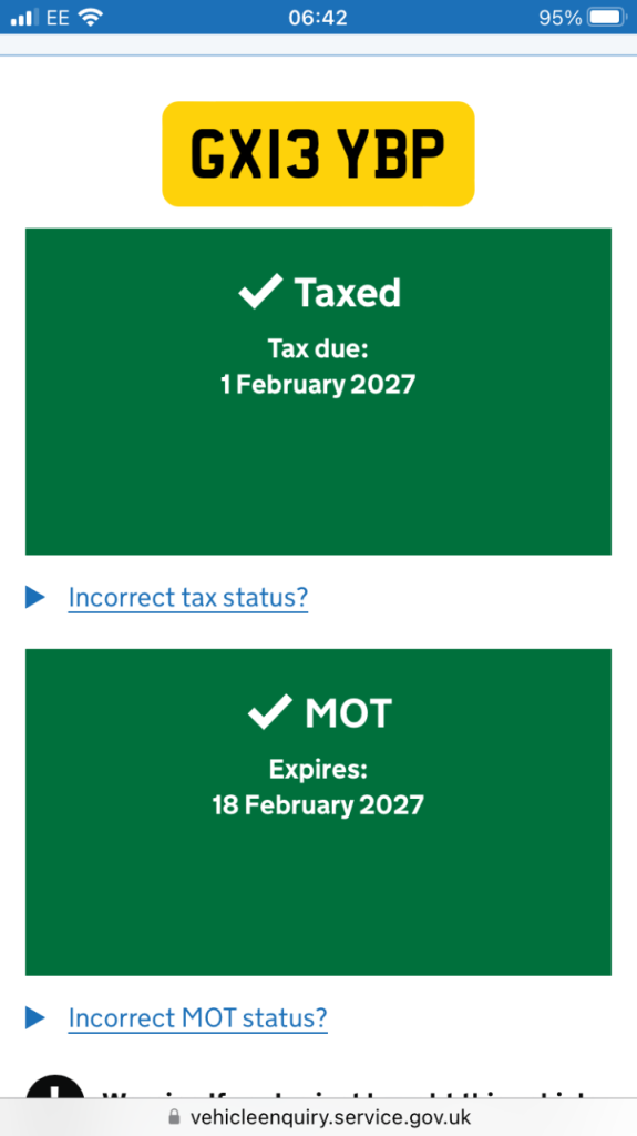 This vehicle has not been reported stolen, scrapped, exported or flagged as unroadworthy.