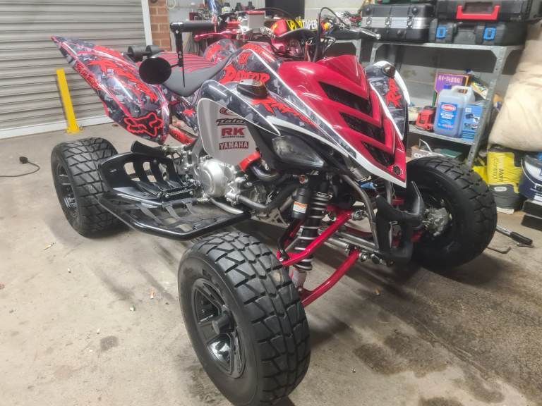 Yamaha raptor 700r special edition, road legal, few added parts include, full exhaust system, pro-taper bars with vapor speedo computer, full new graphics, new seat cover, new red chain and sprockets, bigger front sprocket and smaller back, wheelie bar, comes with set of on and off road wheels, just had service done by myself, selling due to lack of use, very fast quad first to see will buy, selling for £7000 nearest offers NO TIME WASTERS!!!