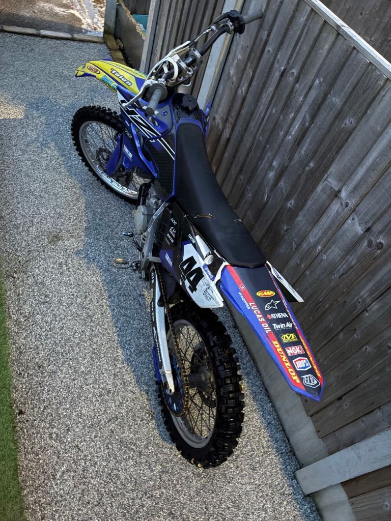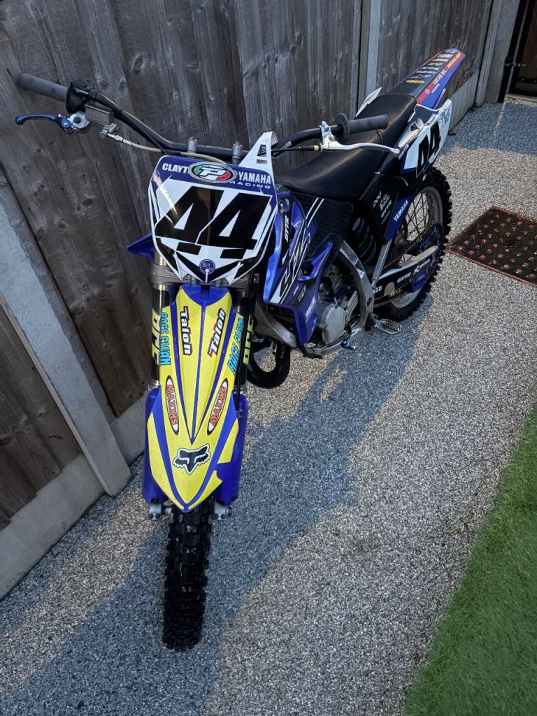 Yamaha Yz125 2007, restyle plastics,v force reeds, fat bars, acerbics chain guide, apico gear selector,wavy disc on front, some anodised bits otherwise standard bike, recently serviced, tyres / pads / bearings / sprockets and chain all good, tidy bike for year pings 1st kick and goes through all gears smoothly, new kill switch fitted,coulple of tears in seat cover minor but worth mentioning, do have some spares to go with it old air box and old plastics if needed inc blue front fender if 1 fitted isn’t your thing