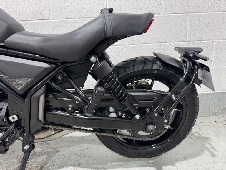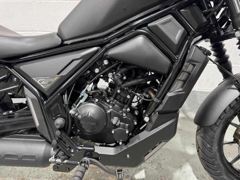 Black, Is it a Cruiser or is it a Bobber?we?ll let you decide.Maintaining superb kerb appeal the bike is crafted with a low seat height making it accessible to all, waiting to share the freedom of the open road.Although learner legal, the C125 has the look of a much larger bike; a sheep in wolf?s clothes.A large 16.5L fuel tank affords you the range to ride into the distance or commute day in day out. Pressed from galvanised steel, tank rust is a thing of the past. Fingertip handlebar control and a powerful linear braking feel from front 300mm & rear 230mm disc brakes delivers a supremely confident riding experience. Dual channel ABS from Bosch ensure outright safety in all riding conditions.C125 is fitted with a USB socket, comprising of a Type A and Type C double connector. The casing is made of high temperature flame retardant material, with a built-in high precision hardware current limiting chip. Single port output can reach a maximum of 18W for rapid convenient charging.Tyre pressure monitoring ensures you run with optimum tyre pressure at all times. Correct tyre pressures ensure rider safety, greater fuel economy and extended tyre life.A clear LCD digital instrument panel presents concise information in an intuitive layout. Bright turn signals, neutral light, low fuel warning etc. all enhance operator safety and enhance the ride experience.A keyless entry system delivers added security and convenience. Keep the transponder fob about your person or luggage and the motorcycle can be unlocked and started when you are within 1.5 metres. Boasting a low seat height of just 700mm, the C125 is accessible to almost all riders. Style aside, the low seat inspires confidence in slow speed manoeuvres, whilst the seat itself if ergonomically shaped to give the most comfortable of rides.*OTR charge of £150 includes number plate, DVLA 1st registration fee, first year?s road tax & L plates.2 Year manufacturer warranty included., , Billy's Motorcycles provides quality motorbikes at a budget to suit everybody.