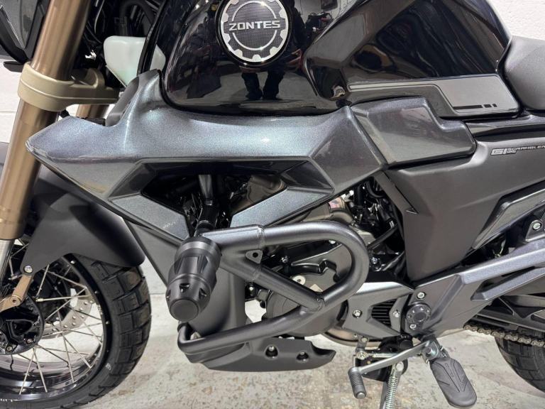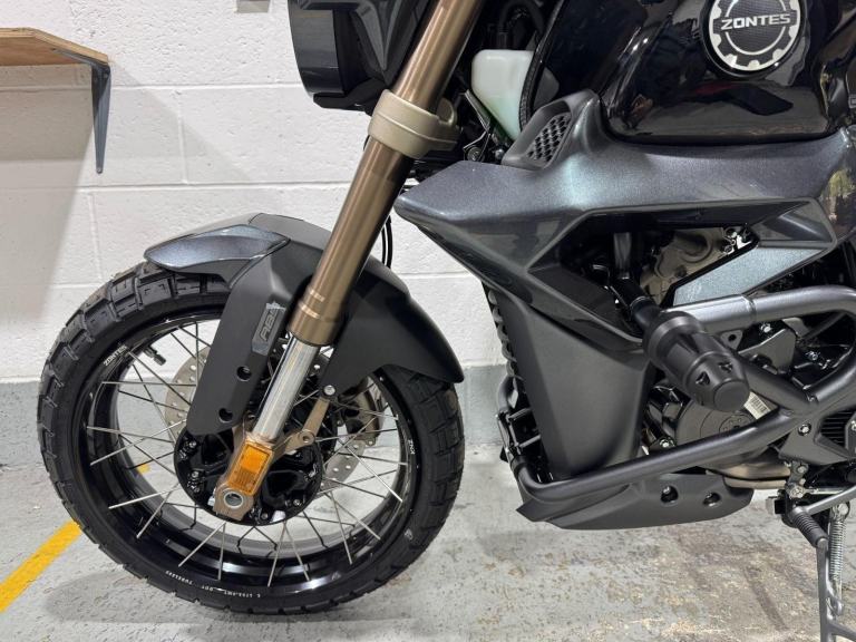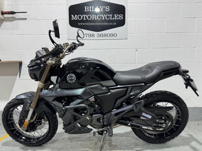 A stunning street scrambler with all the modern tech and performance you could desire in a 125cc motorcycle, whilst offering a nod to the classics.A massive 20L fuel tank delivers a range of almost 600 miles in ECO mode. Pressed from galvanised steel, tank rust is a thing of the past. The dual-channel Bosch ABS system allows the rider to calmly control the motorcycle in any unexpected situation. The ABS system brings confidence under heavy braking, especially in adverse weather and on unstable road surfaces.Big-block adventure styled tyres from CST operate exceptionally well in all weather conditions. Reinforced tyre carcasses prove resilient to punctures and run tubeless.Automotive grade LED lights projected from an aluminium die-cast shell, produces outstanding illumination field of vision. The lamp unit is designed to dissipate heat to prolong LED life and reduce luminaire decay.A centrally mounted mono shock softens the ride whilst delivering excellent control. Filled with high pressure nitrogen to ensure stability over long journeys and set with a small amount of pre-load, the rear suspension offers excellent comfort with reduced rider fatigue.Fitted with a twin port 2.1A fast charge USB socket, all your vital auxiliary devices can be connected and charged for additional convenience. Accessory bars with fitted crash bungs are supplied as standard for enhanced safety and protection.Often seen in larger capacity, high performance models, Zontes introduce a slipper clutch to their latest 125cc models. The movement feels lighter in the hand and if a gear change is mis-timed so as engine and road speed differ hugely, the slipper clutch softens the blow. Unintentional wheel lock ups are avoided, mechanical shock lessened, and rider comfort and safety enhanced.*OTR charge of £150 includes number plate, DVLA 1st registration fee, first year?s road tax & l plates.2 Year manufacturer warranty included, , Billy's Motorcycles provides quality motorbikes at a budget to suit everybody.