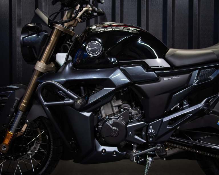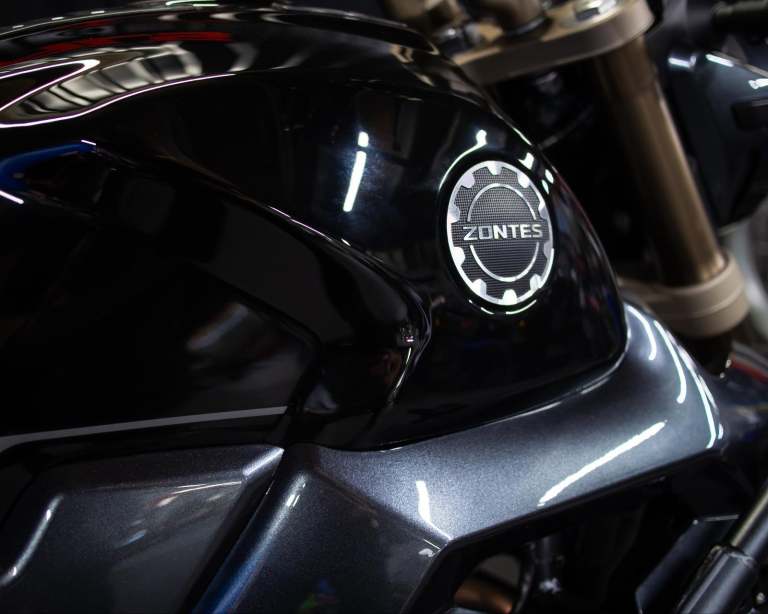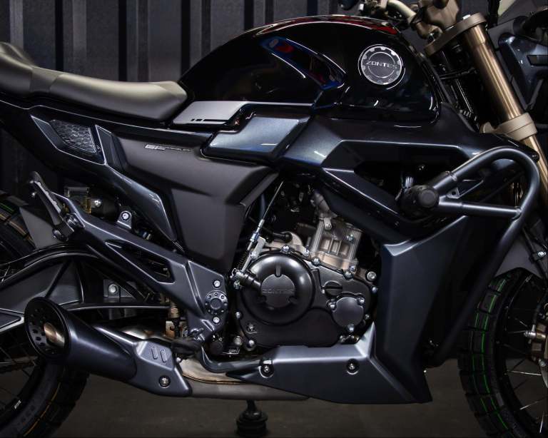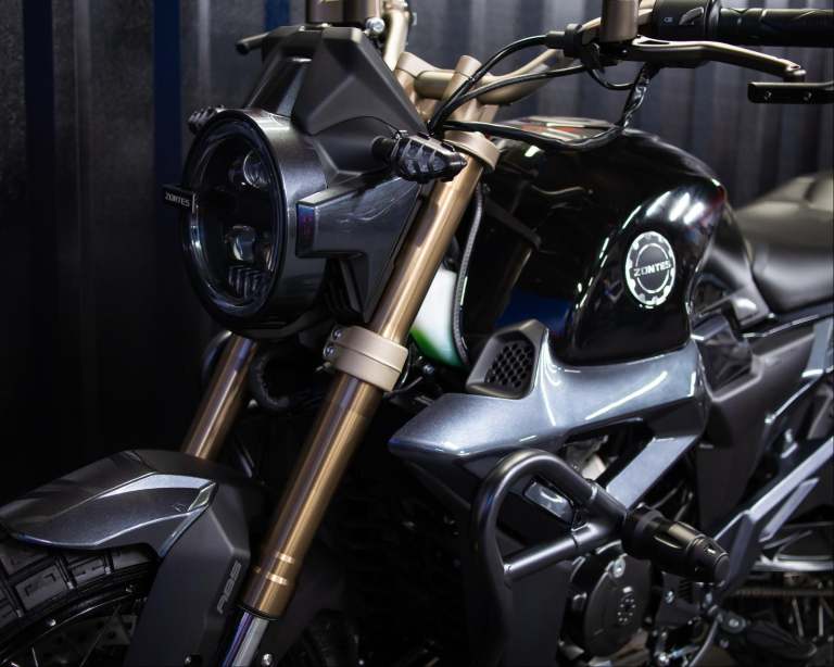 Running a high compression ratio of 12.5:1, the engine delivers 10.8kW @9000rpm. This puts the engine output and bike performance just within the limits of L Plate use in the UK. Another important feature of a high compression engine is low fuel consumption, an increasingly relevant feature in today’s World. To achieve this Zontes utilise the latest materials and technologies available to design a class beating engine.