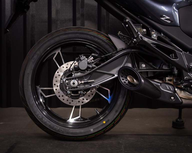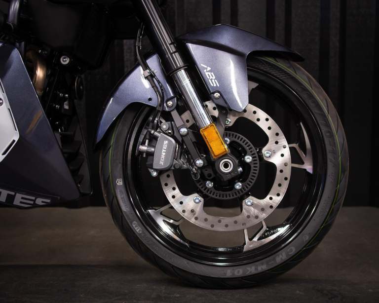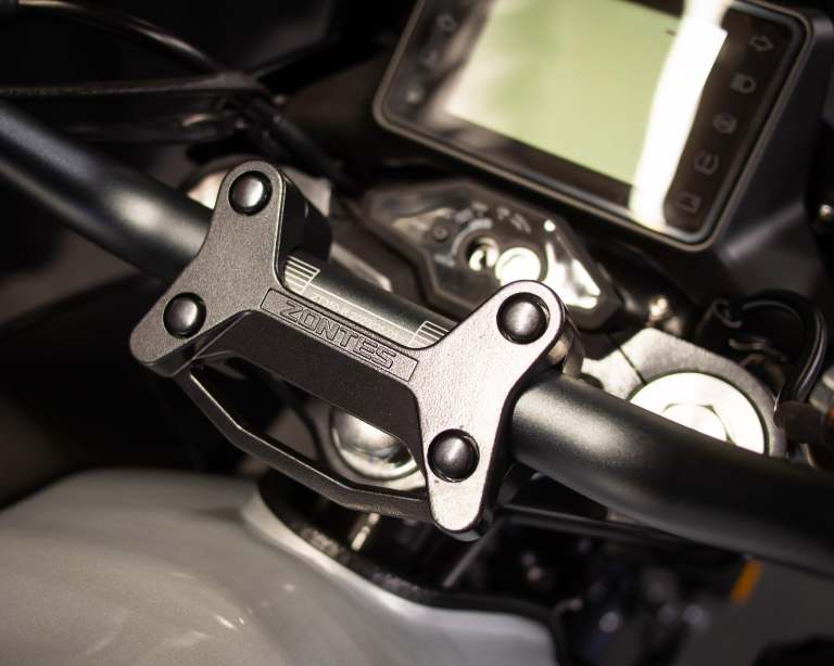Often seen in larger capacity, high performance models, Zontes introduce a slipper clutch to their latest 125cc models. The movement feels lighter in the hand and if a gear change is mis-timed so as engine and road speed differ hugely, the slipper clutch softens the blow. Unintentional wheel lock ups are avoided, mechanical shock lessened, and rider comfort and safety enhanced.