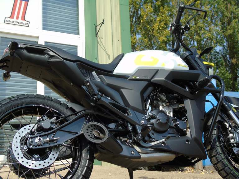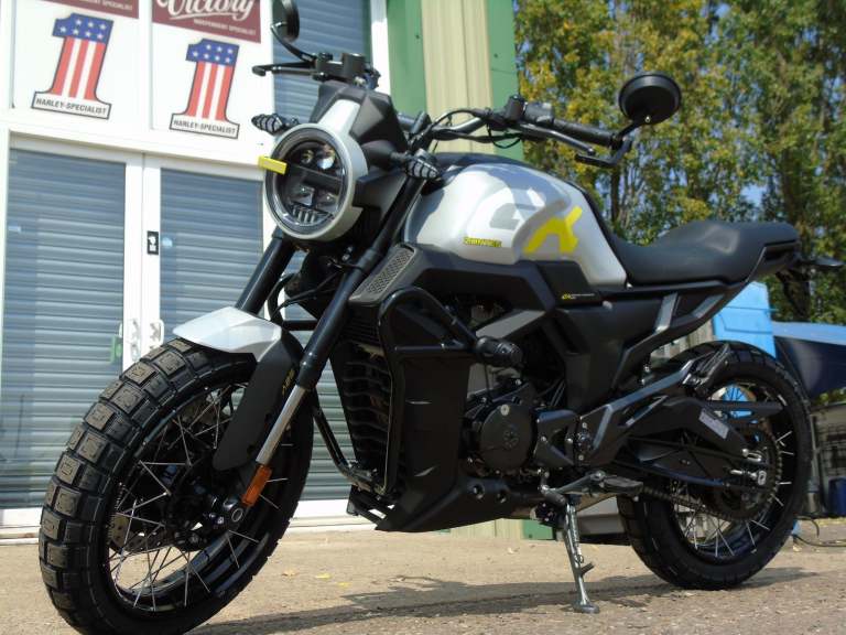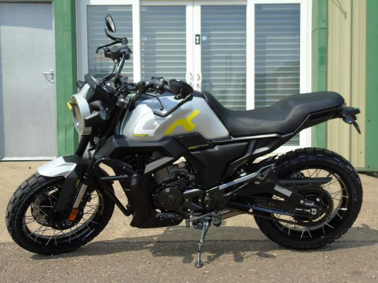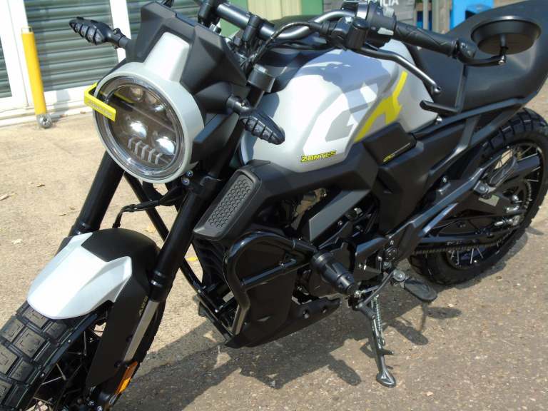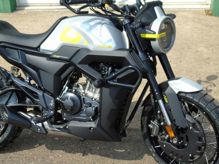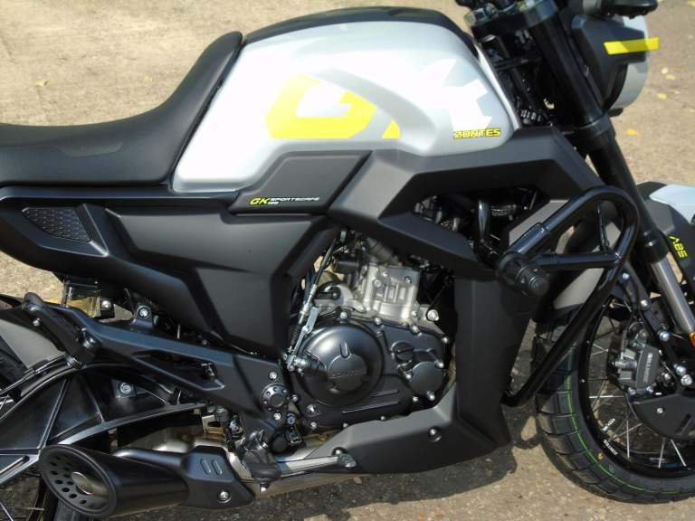 Zontes GK125 Retro Scrambler Brand New, This stylish all new liquid cooled model comes with amazing spec which includes a thumpy 10.8KW ( 14.5 Bhp ) 6 Speed Euro 5 motor, Bosch ABS brake system, Led lights, Stainless Exhaust, Engine bars, Bar end mirrors, Colour TFT dial, Tyre Pressure Monitors, Front Disc Guard and the PKE system, Available in two colours, Black/Grey and Silver/Yellow. . We can offer a Full UK Delivery Service along with great part exchange deals, 2 Year manufacturers warranty, All major cards accepted, Only £3295, Please note showroom opening hours do vary, Tel Showroom 01780 740184 / 01780 437594, Mobile [Phone number removed].
