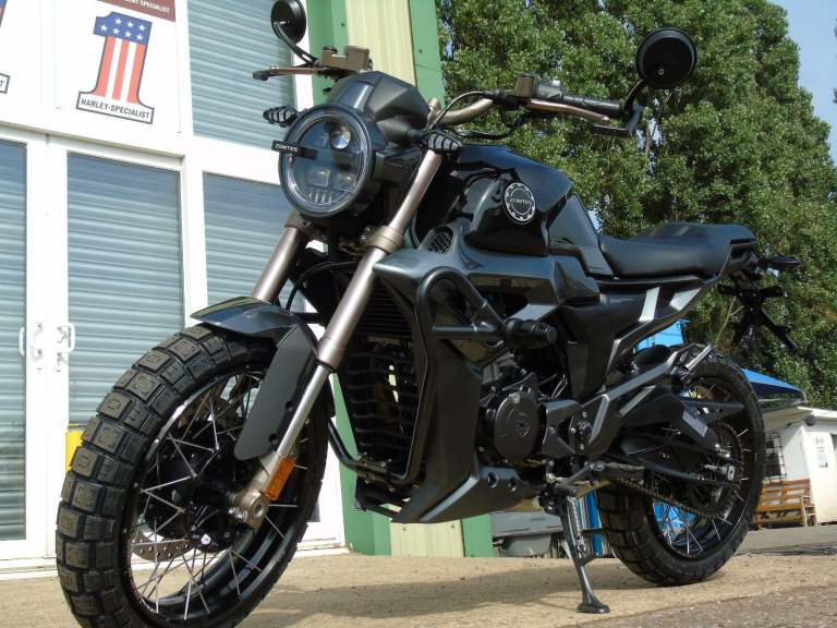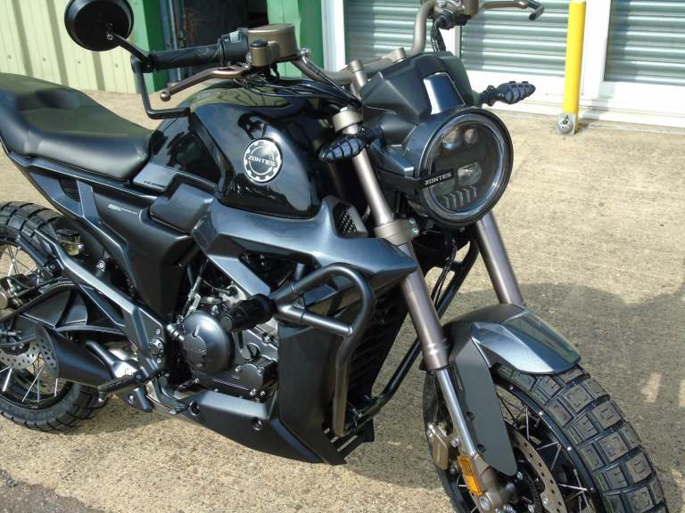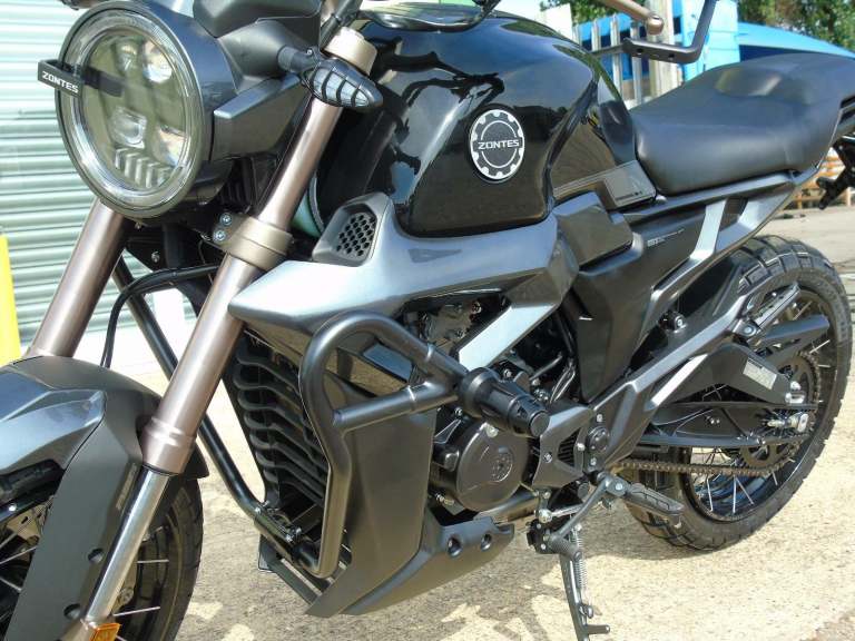 Zontes ZT125 G1 Scrambler, This stylish all new liquid cooled model comes with amazing spec which includes a thumpy 10.8KW ( 14.5 Bhp ) 6 Speed Euro 5 motor, Bosch ABS brake system & Switchable ( Sport / Eco Mode ) ECU, Digital dash, Led lights, Stainless Exhaust, Engine bars, Bar end mirrors. We can offer a Full UK Delivery Service along with great part exchange deals, 2 Year manufacturers warranty, All major cards accepted, Price Drop Was £3195 Now Only £2995,