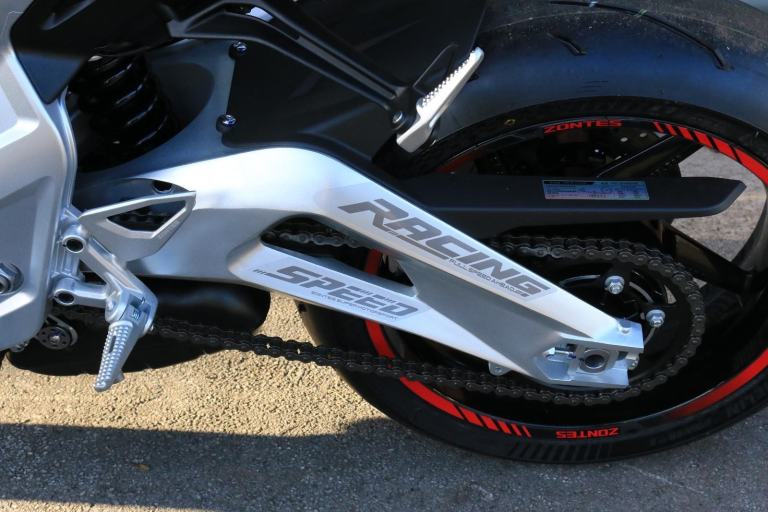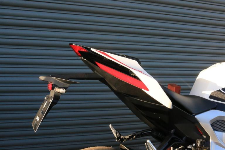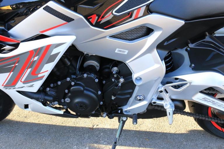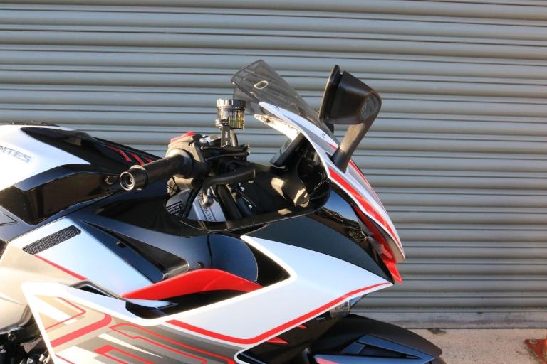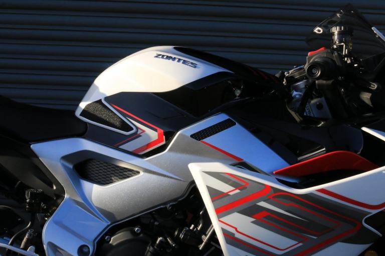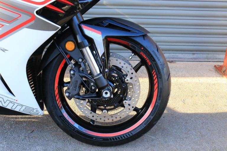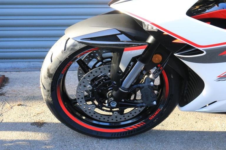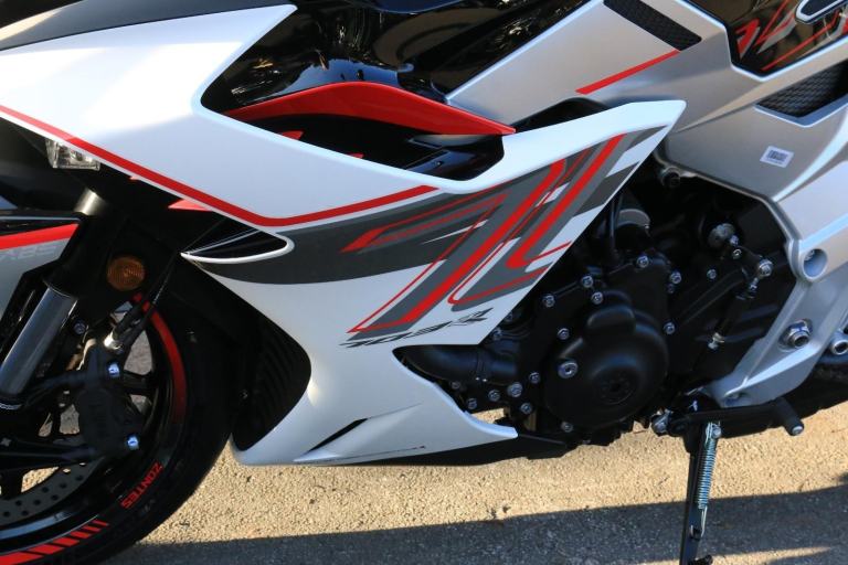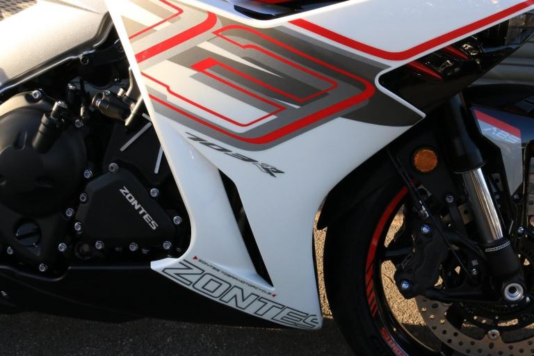 This is the one you've just seen at Motorcycle Live and we have one in stock!! The first thing that stands out about the ZT703-RR is its sporty, stylish, and aggressive design. The sharp lines of its bodywork, enhanced by spectacular LED lighting, give the motorcycle a unique sense of dynamism. At Zontes, the integration of form and function is paramount. For the most demanding enthusiasts, the ZT703-RR is a true technical delight. Marzocchi supplies the high-end suspension. The inverted fork is adjustable in preload, rebound, and compression, while the rear monoshock, which operates on a progressive linkage system, is adjustable in preload and rebound., The braking system is exceptional, with J Juan four-piston radial-mount front calipers and radial pumps featuring on the ZT703-RR. Together with 300 mm semi-floating discs, they guarantee top-quality braking without compromising handling. The advanced Michelin tyres ensure optimal grip in all circumstances. , Incredible spec including Zontes's own a 699cc triple engine with slipper clutch and quickshifter, removal aluminium subframe, Ram air duct, banana style in house designed and manufactured swingarm, Marzocchi USD progressive suspension with pre load adjustment and extension rods, low slung exhaust, RK chain, aero bodywork, configurable 6.75 TFT screen with phone connectivity and mirroring, tyre pressure and temperature display, riding modes, heated grips, traction control, keyless ignition and USB A and C sockets., 24 months warranty, 2 seats, White, Viewing available 24/7 call 01246221742 or [Phone number removed]/[Phone number removed].Usual dealer facilities available