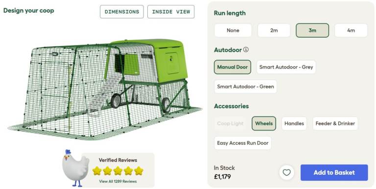 Eglu Cube Mk2 with 3m Run and Wheels Package - Leaf Green