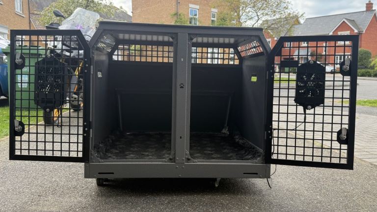 C14 Trans K9 Double Dog Crate and two Airflow fans