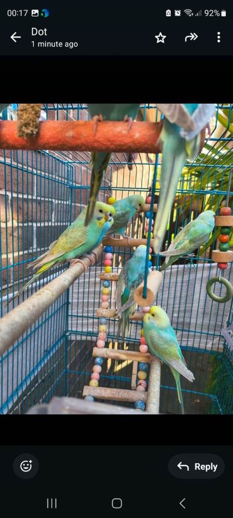 32 beautiful young budgies with cage/accessoriesAge: 11 monthsReady to leave: NowWarwick, Warwickshire£100