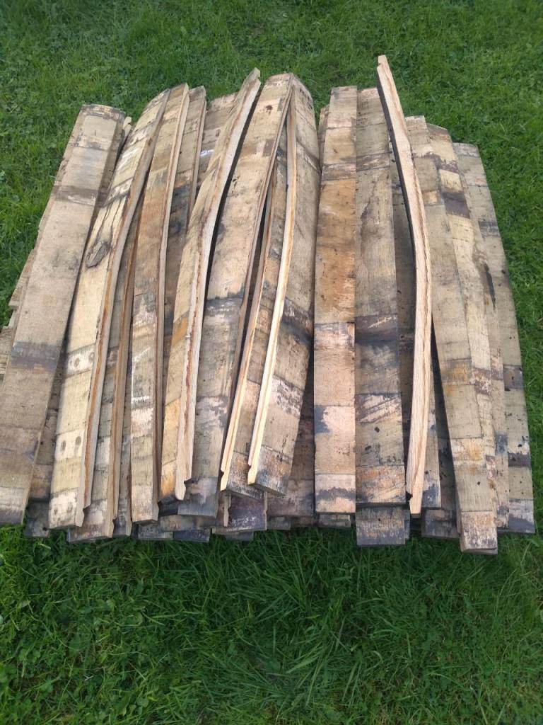Oak barrel staves. Selected at random size. £1 each. Oak barrel staves from used, reclaimed Scottish oak barrels. No cleaning or sanding has been done to them. The back is charred and there is rust and whiskey staining on the staves. Listing is for o