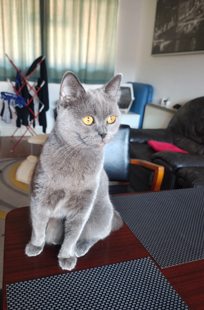 Adorable blue BSH cat