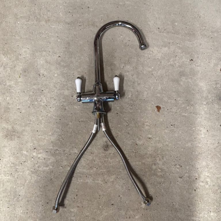 A Nabis mono kitchen mixer tap, only 2 years old. Regal model. Comes with flexible hoses for hot and cold connection. Excellent condition. Instruction leaflet.