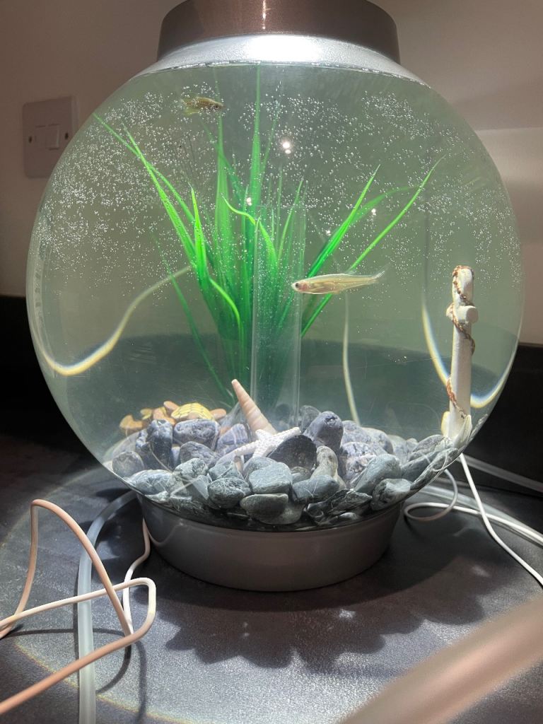 Juvenile red cherry shrimp and juvenile mixed guppies