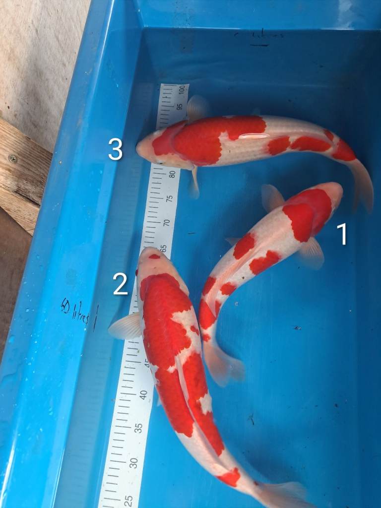 7Three Dainichi male kohaku koi 42-47cm: £150 eachAge: 2 yearsReady to leave: NowMauchline, East Ayrshire£150