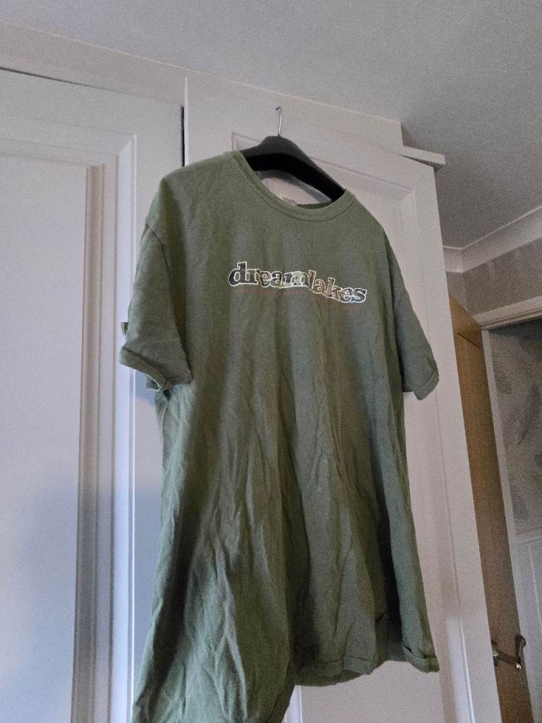 Dream lakes France khaki t shirt and sweatshirt. Size L sweatshirt has a bit of bobbling on it and ties missing for hood
