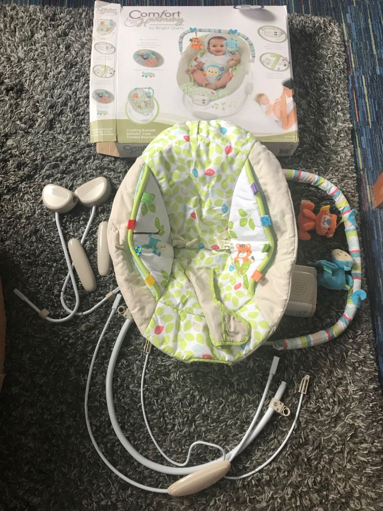 Bright starts baby bouncer really nice once it’s together I’ve only got it out and put it together but my baby was too small at the time to use it so had to buy something else. It doesn’t have the head cushion with it. It’s easy to put together. Pic