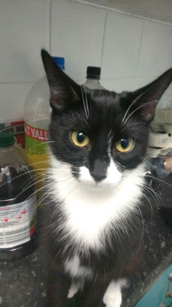 Lost Tuxedo cat,white paws.Pink collar.