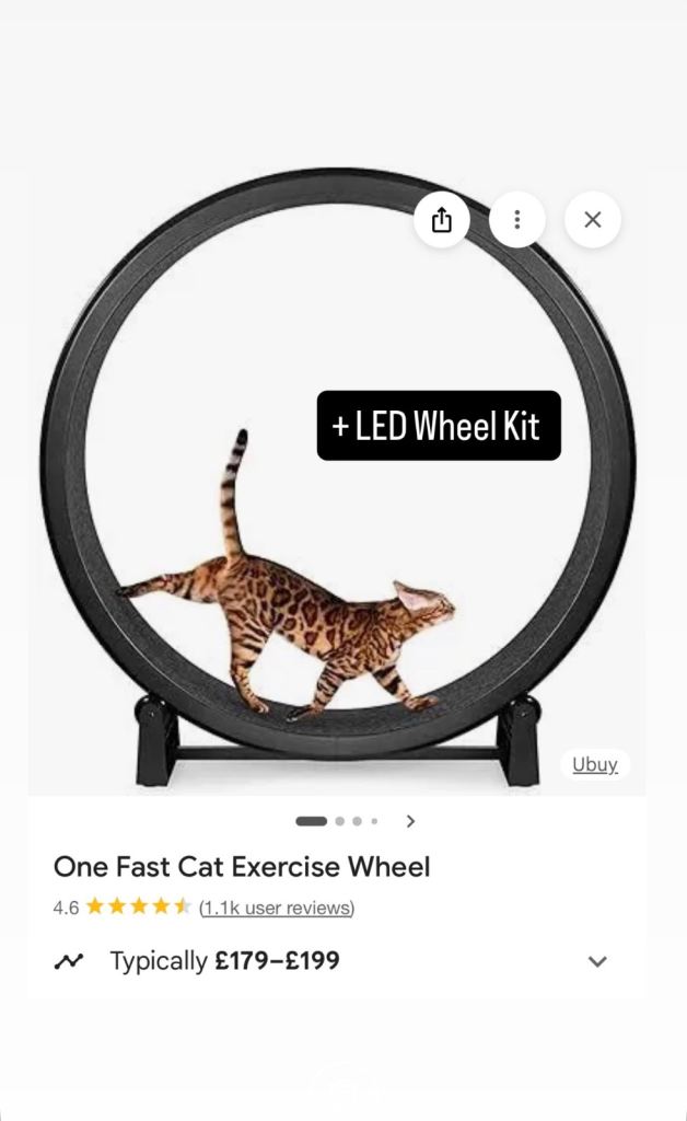 One Fast Cat Exercise Running Wheel Gen 7 - 48 Inch Black & LED wheels