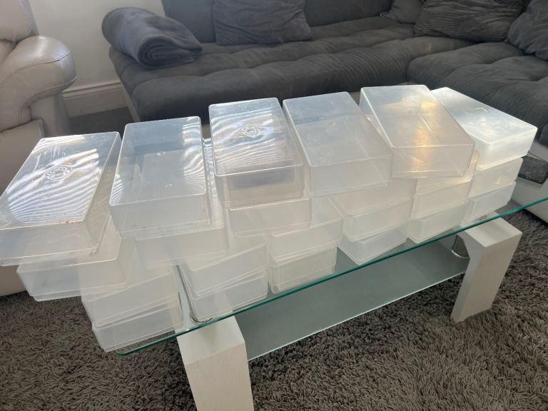 Plastic storage boxes 23cm by 13cm. 23 of these available. These are great for storing arts and crafts materials or office supplies. Collect from bh5 area.