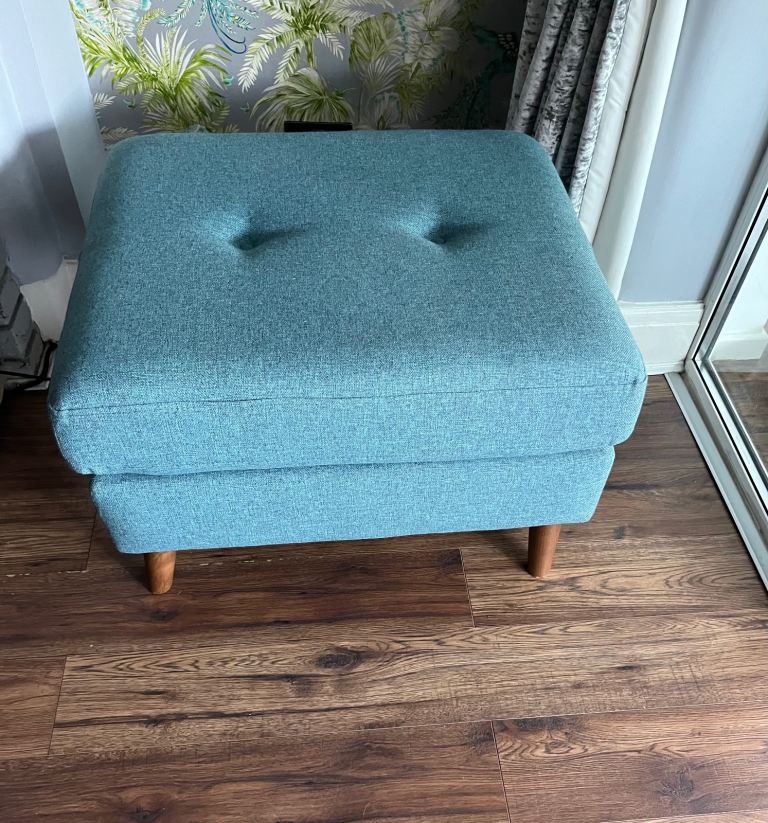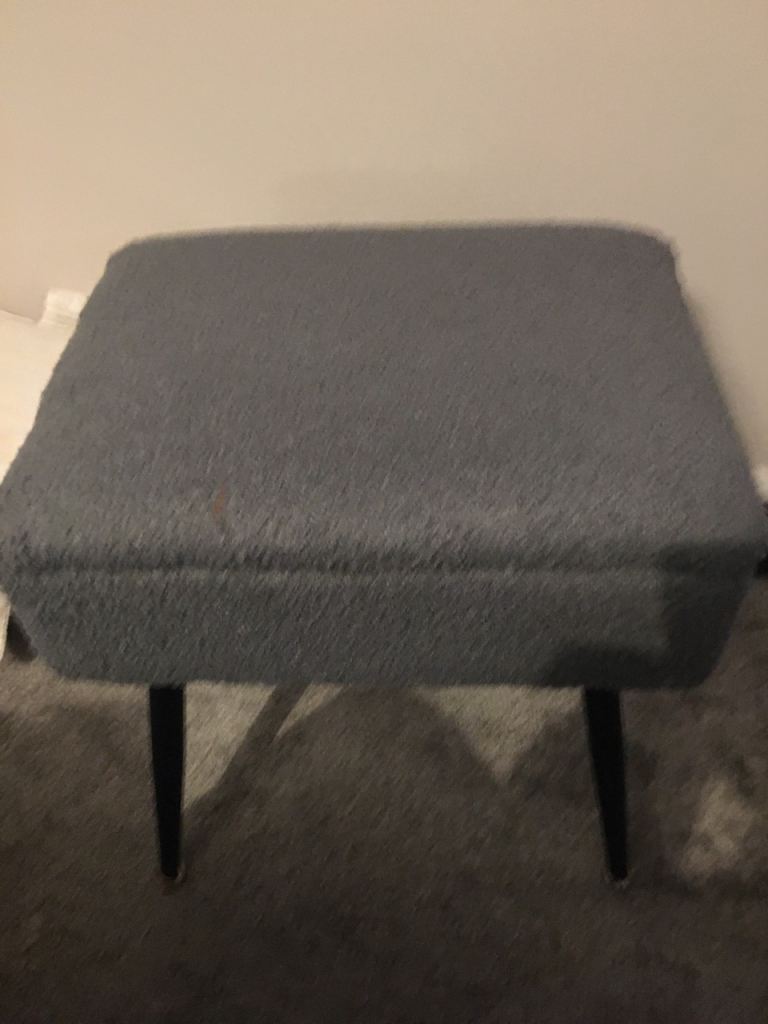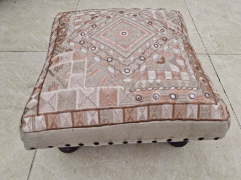 Fabric footstool. Two sets of leg/feet to adjust height. Very good condition. Legs are removed ready for collection. Seating area: 73cm x 64cm