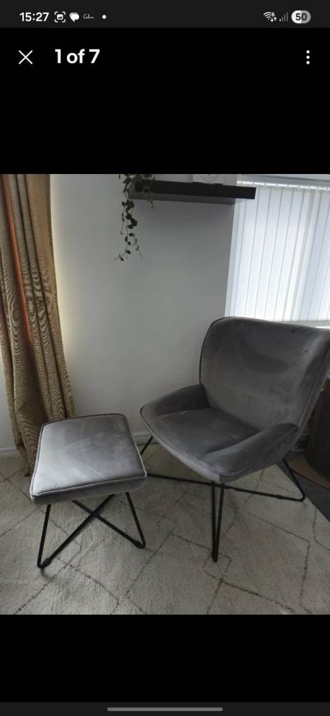 Excellent condition No obvious marks or stains Soft Polyester velvet material Hardly used Comes with matching footstool Current RRP £240