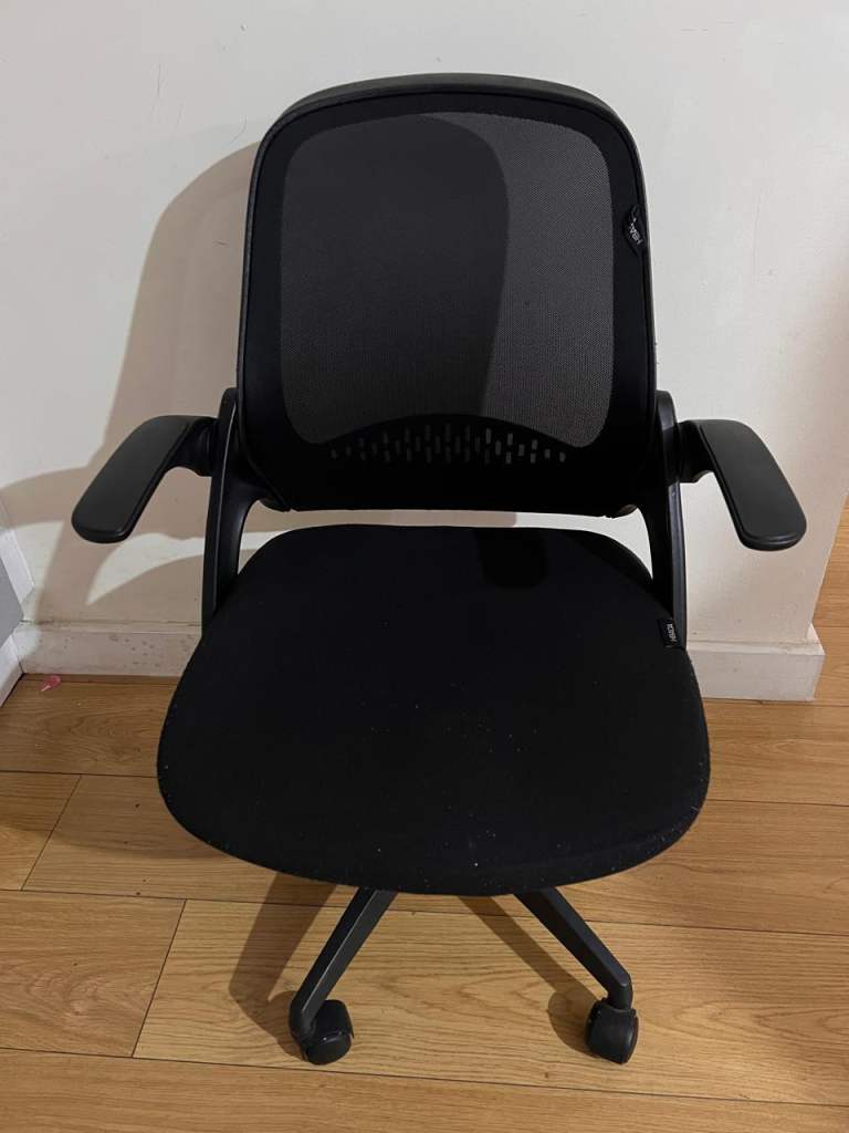 ## ✨ **KEY FEATURES:** 🌬️ **Breathable Mesh Back** — Stay cool during long work sessions 💺 **Cushioned Comfort Seat** — Premium padded fabric for all-day support 🔄 **Flip-Up Armrests** — Tuck away easily to slide under your desk 🎯 **Erg