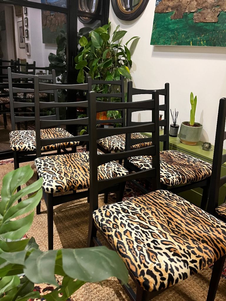A set of six re finished vintage mid century ebonised ladder back dining chairs. All in good solid condition. They measure approximately 88cm high and 46cm to seat. Collection is from Didsbury or local delivery available.