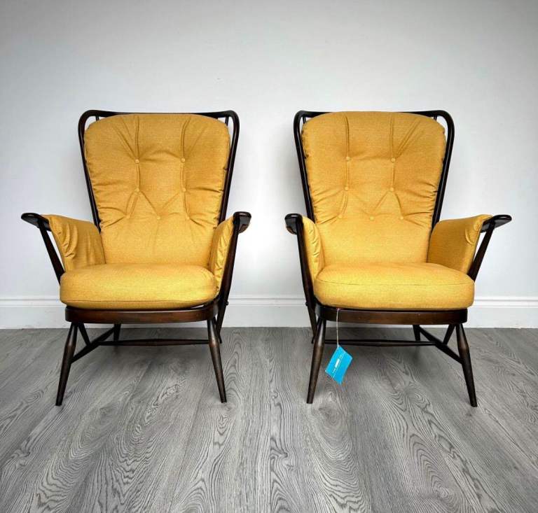 Stunning totally restored Ercol Ever Green Model 478 high back arm chairs ..2 available £195 each...definite wow factor in any lounge 🤩🤩