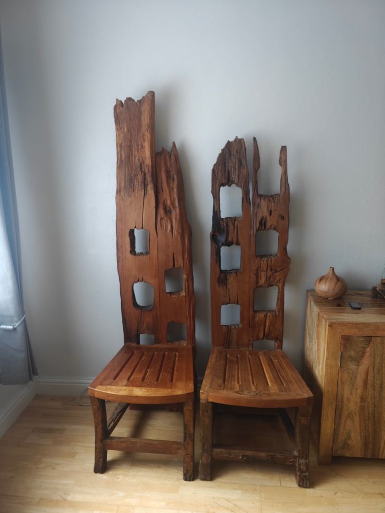 PAIR OF VERY RARE AND UNUSAL TREE ROOT RECLAIMED TEAK CHAIRS £175.00 THE PAIR.