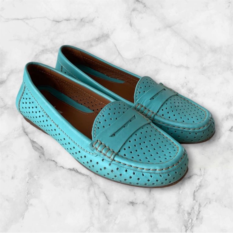 Timeless design crafted from supple leather, ensuring both style and comfort. Their breathable construction and lightweight feel make them ideal for all-day wear, whether you’re running errands or attending casual outings. Colour: turquoise Upper: