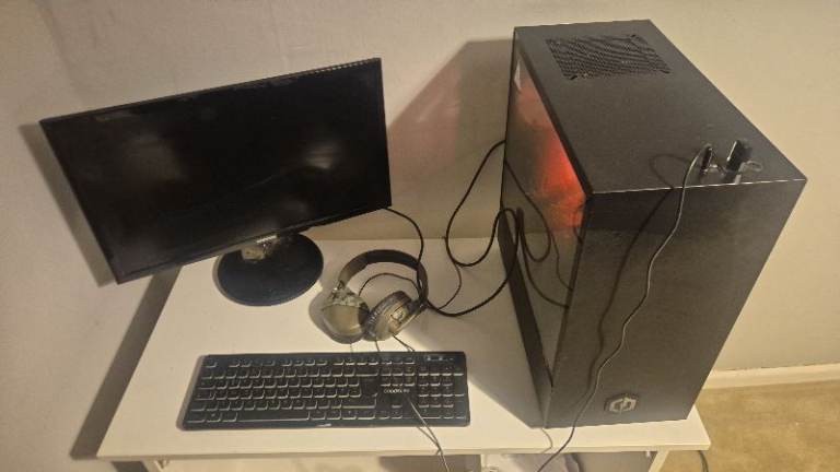 Pc setup Monitor keyboard PC and desk with office chair AMD RYZEN 7 5800x Works perfectly, only selling due to not having time to use it Runs high graphic games well
