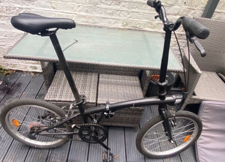 Btwin folding bike for sale, ideal for parts or a repair project. Some parts are missing (as shown in the photo), but overall a solid base. Wheels and bearings are in very good condition. Compact folding design, easy to store or transport. Cash on