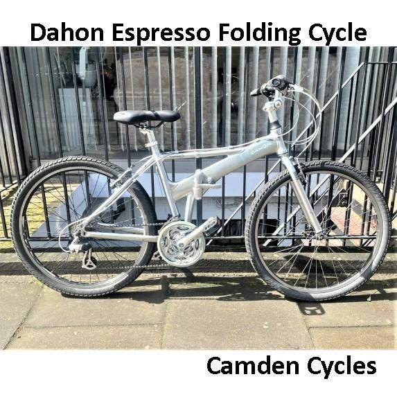 Specifications: Make -------------------- Dahon Model ------------------- Espresso Condition --------------- Used Type --------------------- Folding Bike Wheel Size ------------- 26 '' Gears ------------------- (3 x 8) 24 speed Brakes -------------