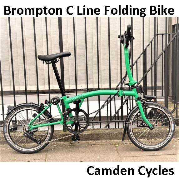 Brompton folding bicycle. This is the c -line series. 3 speed gearing Sturmey archer rear hub. Iconic folding compact design Telescopic seat post. Front luggage mount. Front & rear mudguards Puncher protection all season tyres. Front & rear