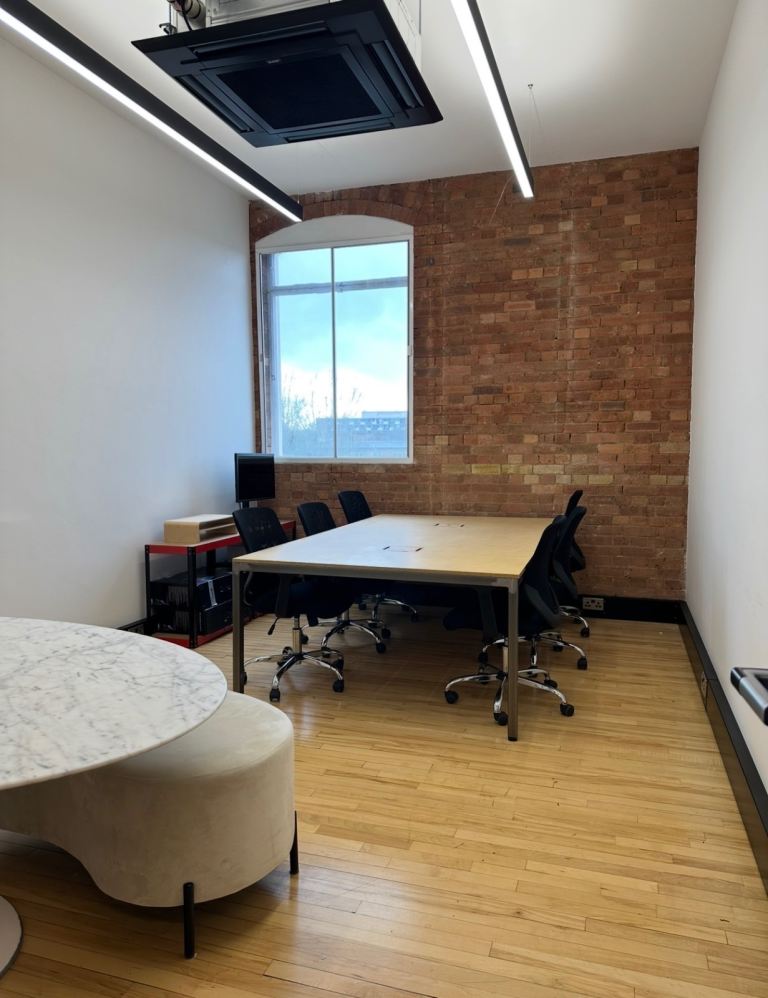 Desk size is 1.4m x 2.4m. Large van will be needed. We have 2 of these available. We also have 10 office chairs at £10 each in great condition. Separately, the 2 office spaces (pictured) also available for rent: - single windows space for 1,203.2