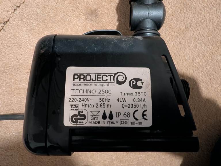 Used water feature kit. Includes Finia 650 reservoir and cover, pump, and green slate boulder. Feed pipe needs fix or repaired as it has been cut.