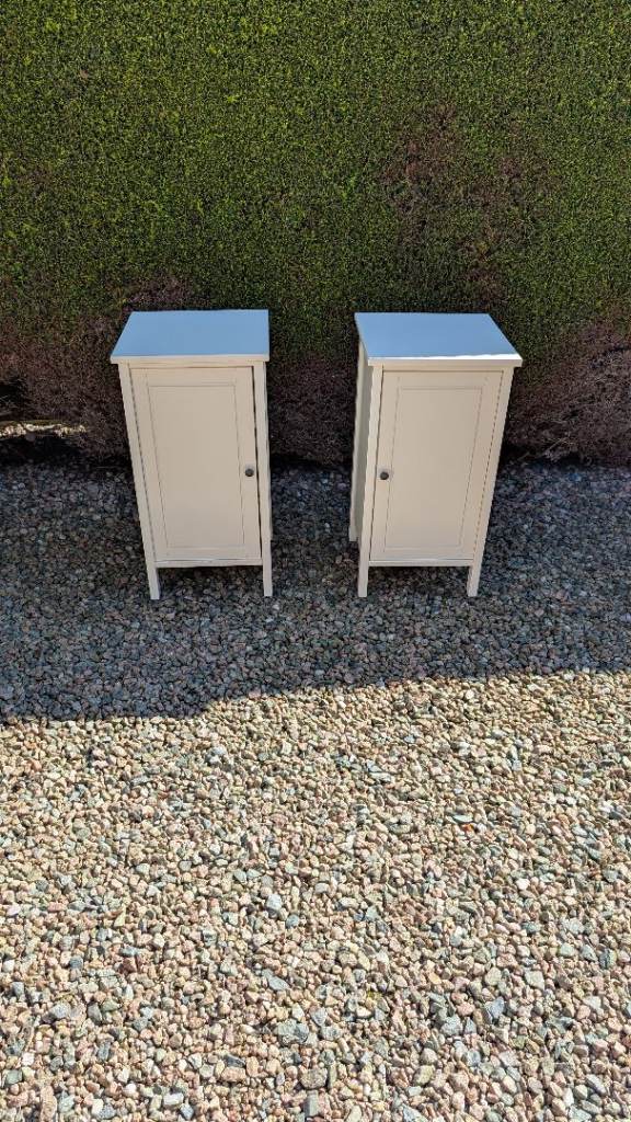 2 Hemnes bedside tables, only selling as we have redecorated. Good quality, heavy units with plenty of storage. Some age related marks but generally in good condition. Perfect as is or can be up cycled.
