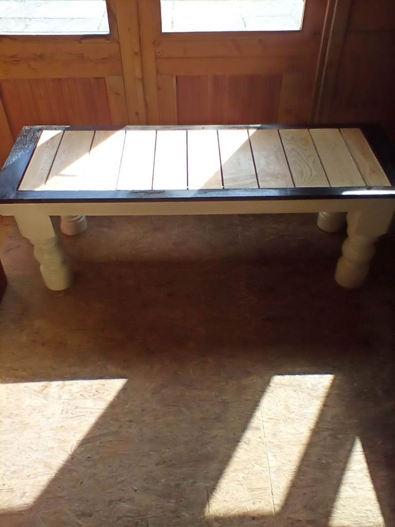 Length 1340 Depth 460 Height440 Hardwood oak top with black edging & white legs