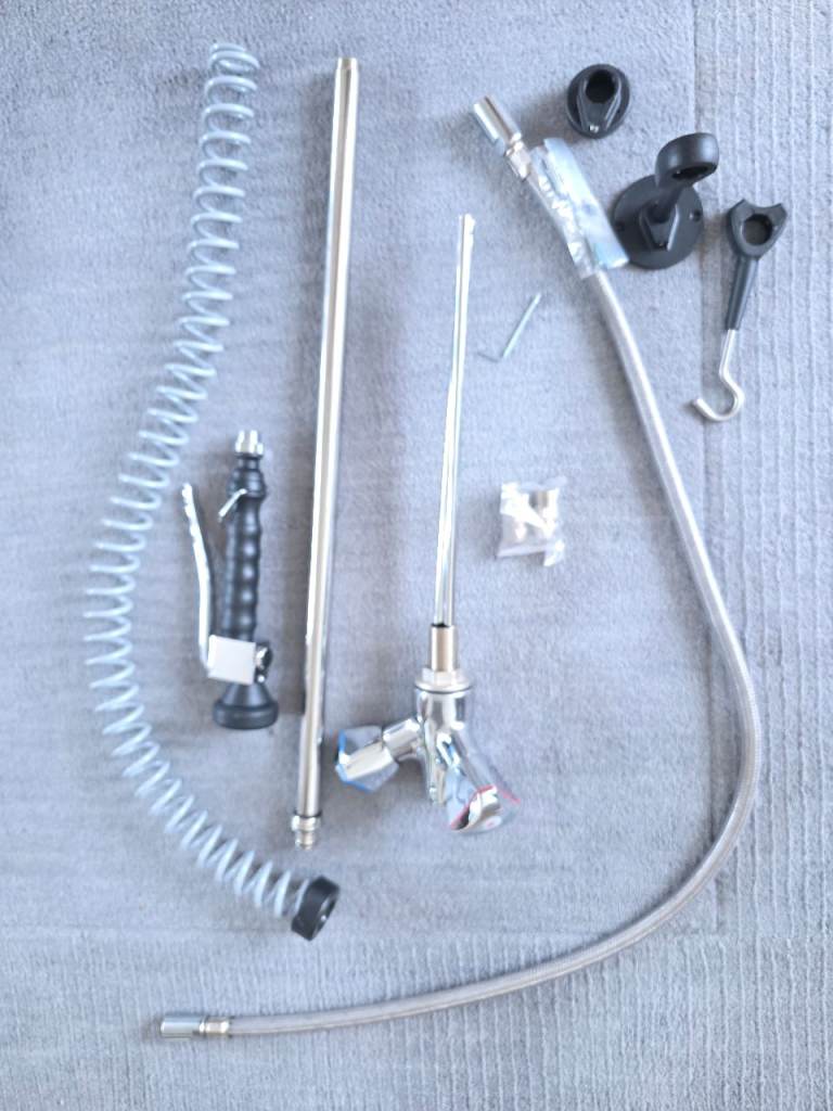 Hi. Believe its a kitchen tap. There may be some minor scratches. May need to purchase additional washers. No boxes. But has not been used. May be able to deliver if local. Any questions please feel free to message me. Thanks.