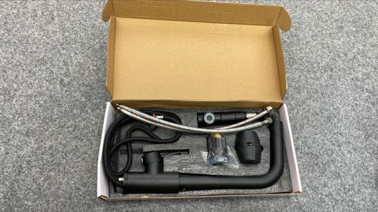 Hi. Believe its a Black kitchen tap. Sold as seen. There may be some minor scratches. May need to purchase additional washers. No boxes. But has not been used. May be able to deliver if local. Sold as seen. Any questions please feel free to message