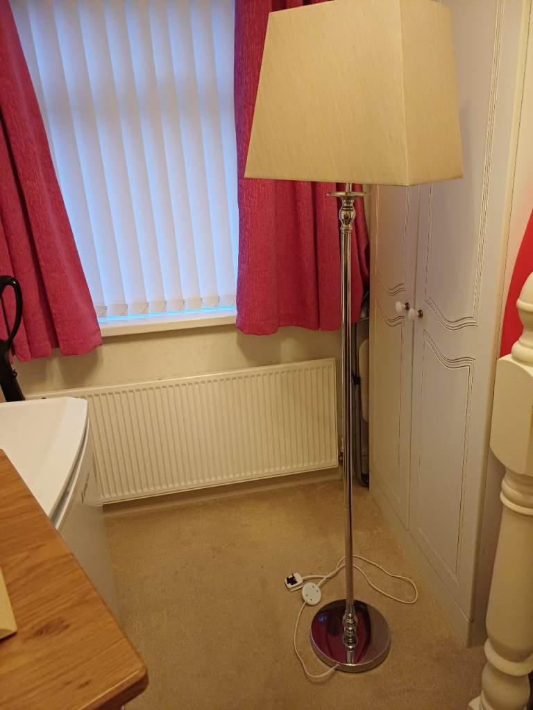 Floor lamp beige shade silver metal rod excellent condition hardly used bought in Dunnes at £65 real bargain £20