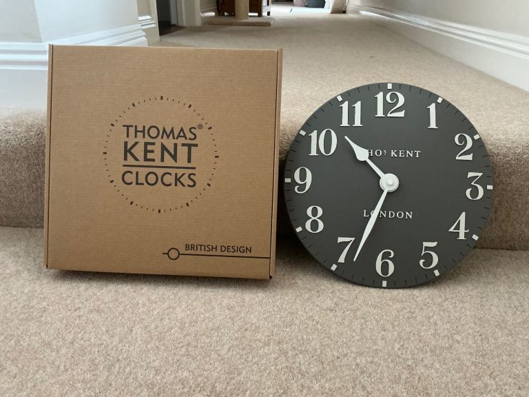 Thomas Kent classic Arabic 12 inch wall clock Colour- ‘Dolphin’ solid grey background with chalk white numerals Brand New Cash on collection