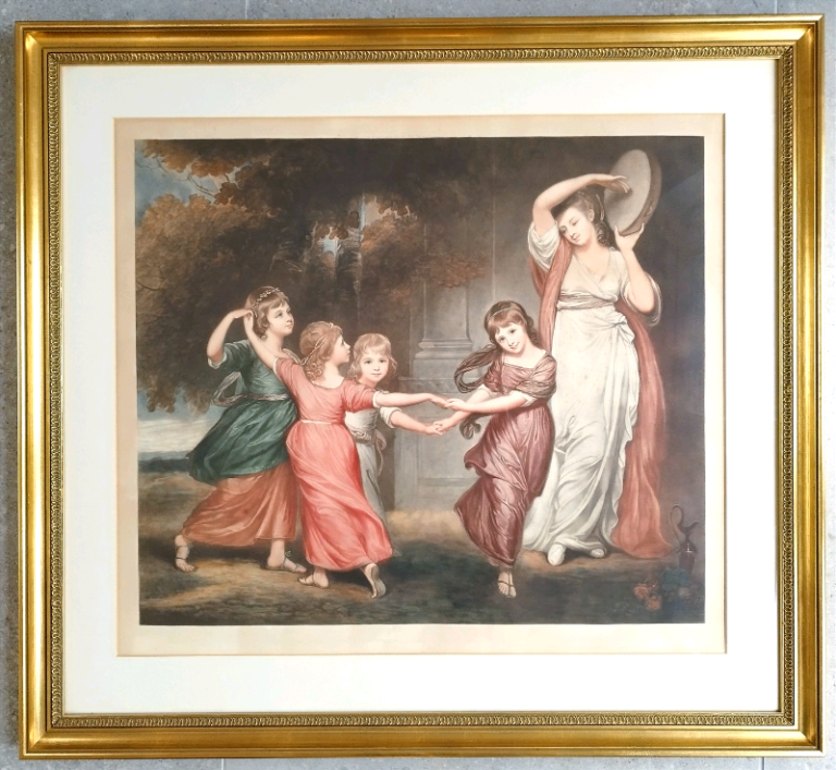 A large scale (63x54cm) hand tinted engraving, signed by Thomas G Appleton (active mid 19th century) after the oil painting "The Gower Family: The Children of Granville, 2nd Earl Gower, 1777" by George Romney, which is in Abbot Hall, Kendal (See Art