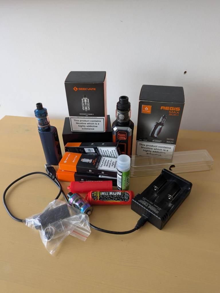 Aegis Max Zeus (boxed) including 1 coil and 2 batteries with charger Vaporesso Gen 80S with 6 coils Geek Vape Z Nano 2 tank (boxed) x 2 Collection only