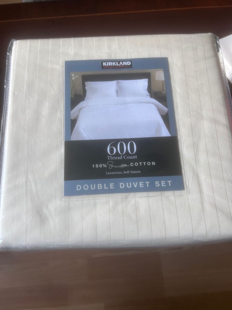 100%supimo cotton luxurious soft sateen in ivory double duvet set in ivory with 600 thread count . Boxed and unopened
