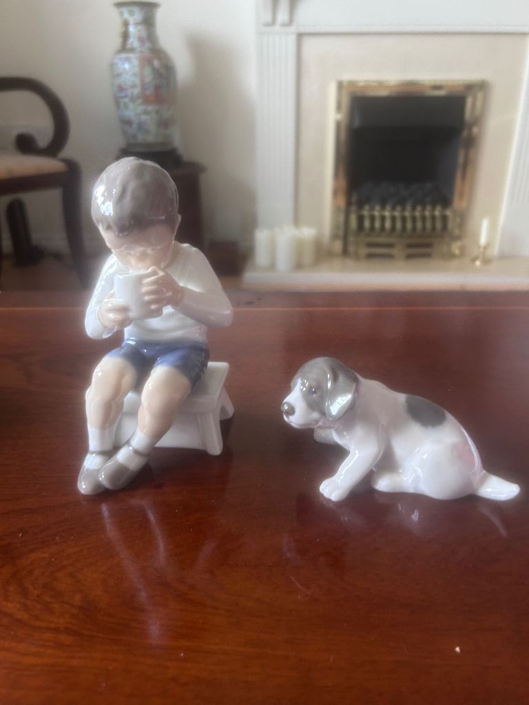 Charming Pair of vintage royal Copenhagen porcelain dog and b&g boy both charming and factory first